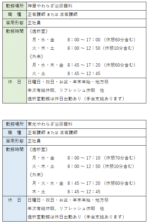 【旭川の泌尿器科・人工透析センター】 医療法人恒貴会 「東光やわらぎ泌尿器科」 / 「神居やわらぎ泌尿器科」